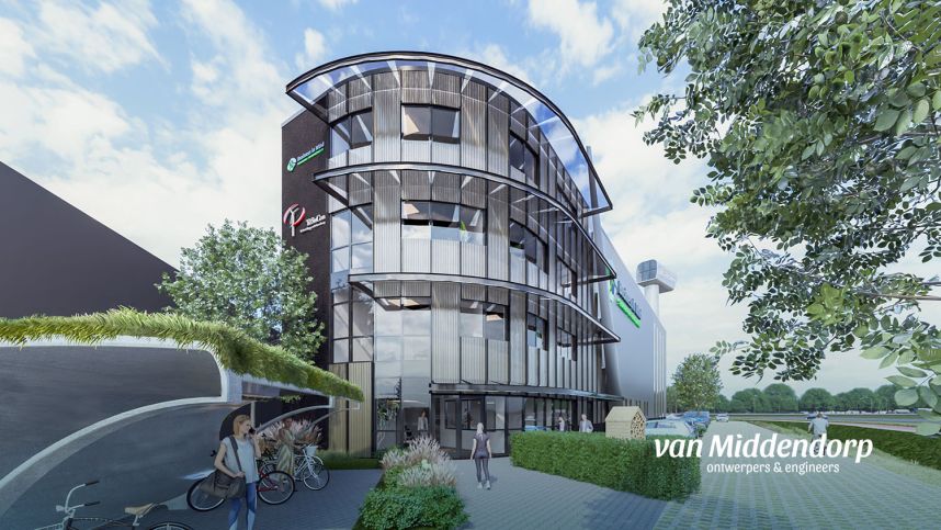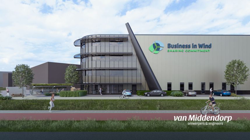 Business in Wind doet hun naam eer aan doordat ze alles doen binnen het marktsegment van gebruikte windturbines. Demontage, transport, opslag, restauratie, installatie, renovatie, en natuurlijk in- en verkoop komen vanaf medio 2025 samen in hun nieuwe bedrijfspand aan de Transportweg in Barneveld. Een uniek ontwerp en de verrassende esthetische uitstraling van het pand, gaat gepaard met de visie van de eindgebruikers: “Het hoeft niet altijd standaard te zijn”. De authenticiteit van het bedrijfspand wordt versterkt door de hergebruikte nacelle, welke een uniek uitzicht biedt over het bedrijventerrein van Barneveld.