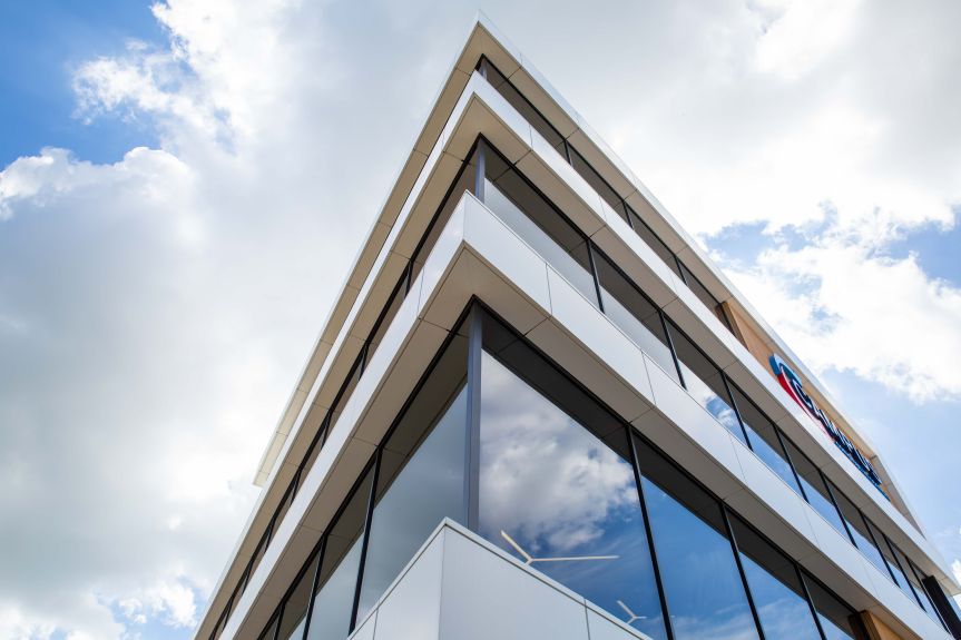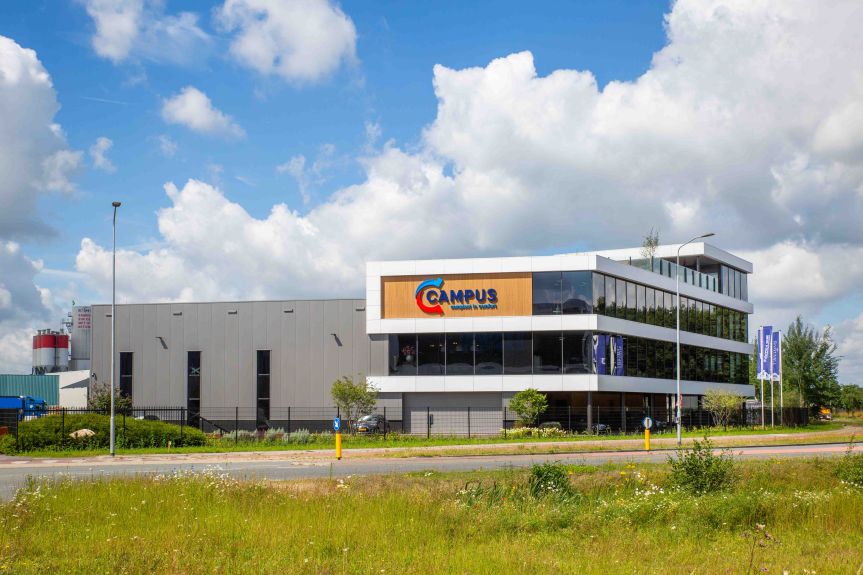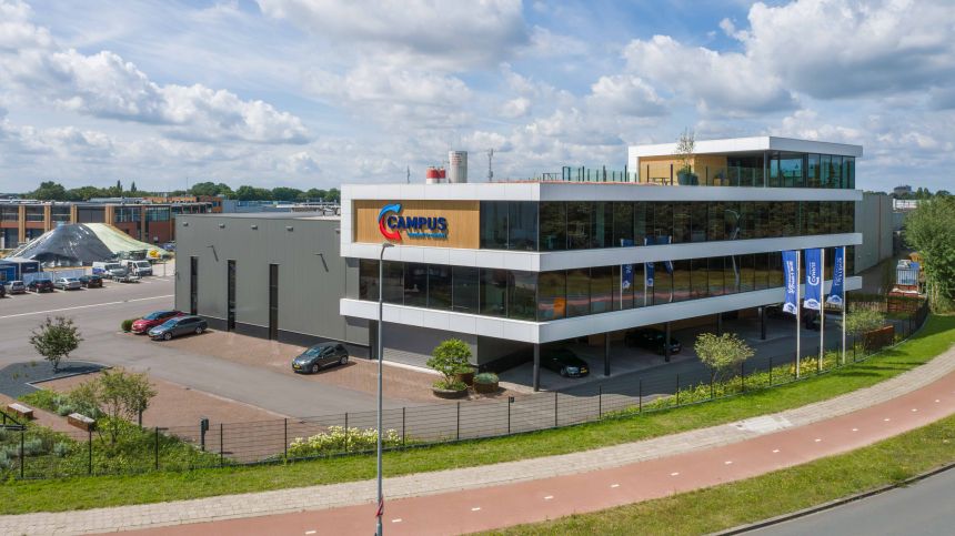 Campus ontwikkelt en onderhoudt woon- en werkomgevingen op installatietechniek. Ze leggen hierbij de nadruk op comfort en duurzaamheid. Het ontwerp en de uitvoering van hun thuisbasis laten dit goed zien. Het horizontale lijnenspel van het kantoor, gecombineerd met natuurlijke houten elementen, geeft deze gevel vanaf de snelweg een markante uitstraling. Dit nieuwe bedrijfspand bewijst waar Campus experts in zijn: het creƫren van aangename woon- en werkomgevingen. Vanaf het dakterras hebben ze een mooi uitzicht op de omliggende gebouwen van onder andere Bosch Beton, Kwetters en de bouw van Business in Wind, allen ontworpen door Van Middendorp.